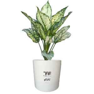 گل طبیعی آگلونما برفی تافکو کد 2024 با گلدان طرح دار اختصاصی